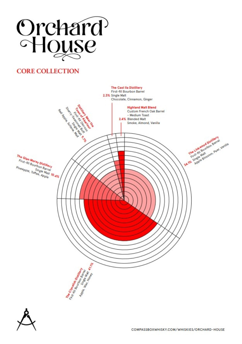 公表されている原酒は、クライヌリッシュ(41.1%)、リンクウッド(34.1%)、グレンマレイ(10.4%)、アベラワー(9.7%)、カリラ(2.3%)、ハイランドモルト(2.4%)が含まれています。